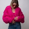 Soft Touch Hand-Knitted Pink Daisy Cardigan, Chunky Wool Blend Sweater with 3D Crochet Flowers, Romantic Cozy Knitwear – Jasmina Knit