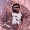 Women’s Soft Heart Shape Balls Hand Knit Open Cardigan sweater